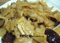 主料:冬笋400克,水发冬菇100克,杂骨汤150克,酱油1汤匙,生粉,香油各适量。