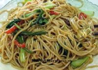 炒扎粉前,将干扎粉用温水浸发至手捏不易断,抓一把竖起来不易软倒为止。然后,洗清沥干待用。铺料有瘦肉丝、不白菜、嫩蒜苗,均切成寸长段。火候要适中,将猪油烧至六成热时,倒入肉丝煸炒,依次加入肉丝、蒜苗、小白菜,再加入少许汤料、酱油、红椒末,成金黄色后,再放进扎粉拌炒。最后放入姜丝、胡椒粉、味精,浇上少许香油拌匀起锅。家乡的扎粉,炒法看似简单,但其水土所孕育出的独特的韧性和香气,却是其它的米粉所绝不能有的。扎粉已经成了宜春小吃的一部分,家乡人食之,好之,习之,那从滋滋的锅里冒出的香气,不知让多少飘泊异乡的游子千万次梦回乡里,思之,念之,心向往之。
