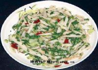 1、将藕洗净,刨皮去节,切成一寸六分长的段,纵切成细丝(越细越好),银鱼用甜酒娘泡一下,温水浸发洗净捞起,滤干。