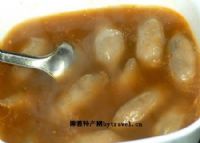 芋糍。做法并不是很“麻烦”:选取易烂的芋子,蒸熟煮烂皆可,去皮冷却,尚有余温,加入适量碾细的红薯淀粉.揉匀,摘成小坯子.馅子依各人口味自定.常用的就是冬笋,香茹,肉,葱,有时也用茭白,香茹,目鱼等,包萝卜丝那只是摆摊子卖的人出于经济考虑才用的。否则,用那么好的料——"哪有那么多娘来嫁"。包好芋糍就做汤,汤做得好对于芋糍来说也是必不可少的环节.做汤要心狠,旺火爆盐,葱白,炝辣椒,八角,浇上水酒,倒入大骨汤,烧开,调好味.一个一个放入包好的芋糍(一起放下去会粘在一起),煮至浮起变色就可以了.一碗芋糍端在手里,红的辣椒,白的葱头,绿的葱花,黄的姜丝,碗中漂着几个圆溜溜土头土脑的芋糍,真是色香味俱全,能不令人大动食指.吃吧,还等什么,趁热吃才有味,吃冷的肚子会痛.一碗下肚,早已是额头冒汗,大呼过瘾。