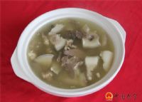 做法:将原料洗净切片入锅加水和调料,大火烧开后,改小火慢炖,一个半小时后即可。