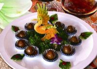 以鲜荸荠为主要原料,配以糖、精肉及其它佐料团成丸子状,入油锅炸熟后,勾芡制做而成,是莘县的传统名菜,具有色泽光亮、外形美观、蜜甜味浓等特点。该食品创制于清代,至今已有200多年的历史。解放前,县城内头号饭馆“瑞生楼”名师孙振生制作最佳。1959年曾进京表演,获得好评。其徒弟潘心德在继承和发扬传统技艺的基础上,改其调味,点缀以绿花,为这一名吃增添了新的风采。因制作工艺复杂,目前制作较少。