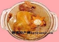 临清八宝布袋鸡创始于清同治年间,至今已有100多年的历史。八宝布袋鸡盛在盘子里活像个趴着的殷红色的整鸡,吃起来烂、香酥,既有鸡肉的异香,又有山珍海味的鲜美,是宴席上的佳肴。八宝布袋鸡与河南滑县的道口鸡记德州的扒鸡同属运河沿岸的熟食鸡。