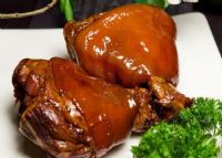 制作时将肘子整理好后上糖色,然后放入大碗内,加上发好的黄精、党参、红枣、葱段、姜片,上茏蒸透取出,翻扣在盘内,将红枣围在周围,将油菜氽透捞出,围在外围,肘子和红枣浇红扒汁,油菜浇白扒汁即成。