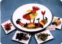 成品特点:色彩艳丽,刀工精细,形象逼真。