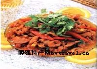 松香狗肉系新泰长宏宾馆陈绪连制作。2000年被评为泰山名菜。此菜狗肉熟烂,松香味浓、风味独特。
