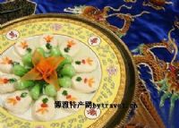 山东美食芙蓉百花鲍。山东名吃。在被称为"海味之冠"的鲍鱼中,以长山列岛出产的盘大鲍鱼最为名贵。"芙蓉百花鲍",就是用此类鲍鱼加上鸡牙子肉、肥肉、鸡蛋清等制成的一道名菜,选料讲究,造型美观,汤汁清澈,鲜嫩可口。