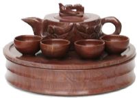 木鱼石是济南市长清区境内的一种珍贵的石材,学名“太一余粮”、“禹余粮”、“石中黄子”,俗称“还魂石”、“凤凰蛋”,形成于寒武纪,距今约5亿年。木鱼石质地坚硬细腻,色泽凝重,纹里清晰,经过精心雕磨,可制成各类造型美观剔透的观赏收藏艺术精品,尤其是那些惟妙惟肖的天然造型的木鱼石原石,更是珍品中的珍品,具有极高的观赏和收藏价值。目前已研制出各类茶具、酒具、餐具、文房四宝等保健器皿及工艺品达40多个系列,近400个品种,产品畅销国内外。用木鱼石制作的器皿,具有通透、防腐的性能,酷署季节泡茶7天,色、香、味不变。木鱼石茶具是指用整块木鱼石石块作出来的茶具,主要包括木鱼石茶壶、木鱼石酒壶、木鱼石杯、套筒杯、冷水杯、茶叶筒等。使用前彻底将茶具内外洗净,用温水洗壶预热,严禁冷壶直接沸水冲泡。使用后,用软棉布擦洗,会越擦越亮。木鱼石有良好的通透性,防腐功能特别好,是会呼吸的天然玉石。泡茶次数越多,壶吸收的茶汁就越多,吸收到一定程度,就会透到壶表发出润泽如玉的光芒。