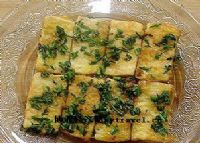 3、将蒲菜沾上面粉,放入蛋黄糊里抓匀,分两排整齐地排在盘子里,余糊倒在上面。炒勺放旺火上,加熟猪油烧至四成热。将蒲菜整齐地推入勺内,煎至“挺身”时,把油出,大翻勺,继续加油煎至两面金黄色时,放入葱姜丝,倒入兑汁,撒上黄瓜皮丝、火腿丝用大盘盖住,微火焖至汁将尽,翻扣在盘子里即成。