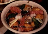 制作过程:猪肘肉、带骨雏鸡肉均剁成。3.3厘米见方的块,放入开水锅中氽过,取出放入砂锅内。鸡蛋煮熟剥去壳,沾匀酱油。放入油锅中炸成金黄色捞出,摆入砂锅的四周,火腿、青菜心均切成小象眼片。砂锅内放入清汤、绍酒、葱段、姜片、精盐,旺火烧开后,移至小火炖至酥烂,取出葱段、姜片、放入火腿片、青菜心略炖。撇去浮油,放入味精,淋上鸡油即成。