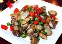 花蛤400G、大葱2根、蒜4瓣、姜30G、红干椒3个(根据喜辣程度可加减)、油适量、鸡汤1/2杯。
