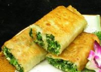 煎饼,是沂蒙山区民间传统家常主食,也是久负盛名的地方土特食品,是广大老沂蒙地区的特色食品。“塌煎饼”(又叫菜煎饼),则是临沂城的一绝了。当你走上临沂市区的大街小巷,你都会发现,路边的一些小媳妇、大姑娘们在路边的三轮车上不停地“塌煎饼”:他们在三轮车上支起一盘小鏊,旁边食盒内放着已经切好的各种各样的蔬菜,如韭菜、粉丝、豆腐皮、绿豆芽、黄瓜条、白菜等等,当然还有辣椒面、生鸡蛋、香油、盐巴等佐料。他们一律把小鏊翻放在车上的煤球炉子上使用,中间凹,四面凸,炒菜时兜油兜菜。当有人前来“塌煎饼”时,先把鏊子烧热,放上菜油,然后根据食客的不同口味,调配不同的蔬菜、佐料,接着开始用两只铲子对着翻炒,等鏊子上的蔬菜炒到七、八成熟时,把它倒在两张摊开的煎饼上匀平,再四边卷起、平压,放回烧热的鏊子上两面翻“塌”,不时轮流转动,使之前后左右受热均匀,直到煎饼面皮焦黄、发干,这时煎饼也就“塌”好了,里面的菜也彻底熟了!这会儿,吃起包菜的塌煎饼,又热乎又脆香,经济实惠,蛮有风味!