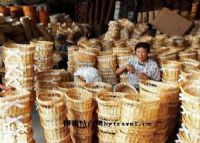走进柳编之乡,看到的是一方方、一片片嫩绿的柳条。微风吹拂下,万亩柳田那绿色的波浪此伏彼起,景致煞是壮观。更引人入胜的还要数坐落在十多个村庄的柳编制品贸易货栈或加工厂。一溜摆开的10多间宽敞明亮的大仓库,库房里盛满了上千个品种的柳编制品。其中有供观赏用的各式花盆外套、花篮、吊花篮等;有日常生活用品如纸篓、洗衣筐、提篮、挎篮。一件件玲珑剔透,各自错落有致,静动结合,栩栩如生。 走进农户,家家户户男女老少编着柳条。不知是谁家传出悠扬的《柳条歌》:“涝洼湿地可发芽,青枝绿叶不奢华……”歌词唱出了这里的劳动人民对柳条的赞美。其实,这里的农民也正如柳条一样勤劳、质朴、率真。