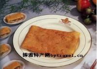制作工世精细,小锅饼一直面名于山东江苏等地,形以蘑菇,大小如盘,中心薄,周围厚,中间压一“十”字,一饼可分四瓣,饼面色董红,富有光泽,入口酥脆,既香又甜,是旅游携带的方便食品。又是馈送亲友的风味佳品。( 日照)
