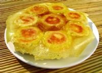 5、平底锅中热比炒菜多一点的油,包子放入略煎一下(注意火不要太大),一碗水加一点面粉调成面水,倒入锅中,要到包子的三分之一到二分之一,盖锅盖小火闷至水干起饹馇,就好了。