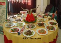 “全羊席”选用三年以上生长的羯黑山羊(经过阉割的公羊)为主料,宰杀前只饮水,不喂食,使其空腹,从羊血开始按宰杀的顺序,割到哪个部位,即以哪个部位的全部或部分,分别施以烹、炒、煎、炸、烧、蒸、闷、炝、拌等不同的烹饪方法,加入酸、甜、辣、咸等各种不同佐料,分别制成各种各样的成品菜。最后再加上一盆各部混炖的全羊汤,组成众口皆碑的“全羊席”。