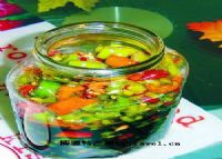 糟椒子的最佳世间是阴历九月下旬(阳历约十月下旬),这是天气凉了,发酵温度适宜,又是大葱、辣椒成熟的季节。大葱出垄,把老叶子去掉,剥出葱白。将大葱用水洗净晾干或者用布擦干净,然后切成一指宽葱段。糟椒子一般不用尖辣椒,因其皮薄种子多;大都用圆形的柿子辣椒,最好选取成熟的红辣椒。将辣椒去掉种子,将辣椒去掉种子,用到切碎,和葱段一起放到大盆或锅内,加少量的盐搅匀,再加蟹酱搅拌,然后装入坛内盖好,放在背阴处发酵五六天,编织成了辣椒子酱。