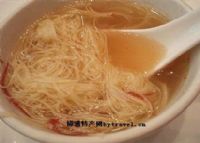 景芝金丝面已有300多年的历史,与三页饼同为白案佳品,因色黄丝细,犹如金丝得名。金丝面以精面粉、鸡蛋和食盐为原料,先把鸡蛋打入盆内调匀,再加入精面粉和食盐,和为硬面,擀成透明薄饼,切为细丝,出锅后放入鸡汤内,加适量食醋、芝麻油、虾米、胡椒面、香椿末、香菜梗或嫩韭菜等佐料。金丝面颜色淡黄,细如金丝,软硬适度,清香可口。