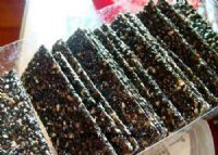 景芝镇传统小食品之一,历史悠久。成品为小方块,色泽乳白,质地细密,松脆爽口、甜香宜人。其工艺为将精选的饴糖、麦芽糖、白砂糖等放入容器内熬制,到一定火候,放入炒熟的精选上等芝麻,进行搅拌,直至混合饴糖和芝麻均匀的黏附,然后经过1的模具成型,手工切制而成。其特点为选料细致,制作认真,使产品规格、组织、口味均臻于上乘,深受群众赞美。