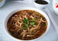 熟,浇海味三鲜卤、鱼片卤、大虾卤、鸡丝卤、蛤仁卤等。滑爽筋道,鲜香清口,独具风味。