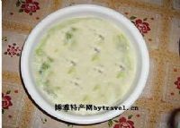 是一种清、鲜、嫩取胜的菜肴,<记海撮>云:“凿破其房,以器承取其汤,肉可食,其浆调汤尤美也。”烹制时,将蛎肉淘净去渣,蛎汤澄清后倒入勺中烧沸,放时蛎肉一氽,再加葱花、香菜末、香油及适量精盐,即可食用。汤似乳汁,前人称为“太真乳”。