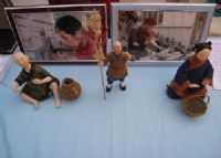 糨模人泥塑是莱西民间艺术一种,以清同治年间民间艺人李国文、李振全父子最有名气,尤其以捏制小型人物泥塑而闻名乡里,其手捏的泥塑作品精美细腻,生动传神,深受人们喜爱。初期的糨模人泥塑作品一般为制作简单的耍货类玩具,历经技艺传衍,至第二代李振全起才逐步将作品形成自家独有的风格并逐渐趋向于具象化写实泥塑。糨模人泥塑的制作材料是取自当地的一种地下生性黏土,黏土分黄和黑两种颜色,当地人称为黄金泥、黑金泥。黏土取回后装入粗布制作的布袋中,扎紧袋口,置于缸中浸泡数日,泡透后拖动布袋进行漂洗,洗的泥浆搁置沉淀后漂去浮水即得到用来捏塑的泥料。这种泥料细腻柔韧,可塑性强,阴干后进行烧制异常坚硬,因泥塑所用泥料是漂洗泥浆的来,这里的“浆”即“糨”字,又有部分模具范制作品,于是民众就送了一个恰如其分的称谓——“糨模人”。糨模人泥塑极具传统性,作品分传统耍货及写实性泥塑两种。耍货一般以生土的粉彩泥塑为主,如泥叫虎、不倒翁、摇啦机、1造像等;写实性泥塑则以烧制的素胎泥塑为主,兼有粉彩装饰,题材多数是生活中的人物,尤其注重刻画人物的面部表情,作品多美颜带笑,生动传神。