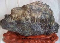 崂山绿石产于崂山仰口湾绿石滩深水中,清代《即墨县志》称“1石”。此石色分翠绿、墨绿、青绿、灰绿、黄绿和粉绿几种,以翠绿色为最佳。绿石的构成分子为片状或粒状,硬度为56°~59°,质地细密,富有韧性,有丝绸般的光泽,用手抚摸有一种温润似玉的感觉,可雕琢为砚、墨盂、笔架、镇纸等饰物,亦可作盆景的素材,兼具古朴典雅和绮丽清奇的风格。