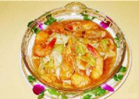 用虾数只,剪掉腿、头前边的硬刺等等一切可能会妨碍你吃它的部分,用热水焯一下外皮泛红就捞起来备用;白菜叶,用手撕成大小合适的片,大一点没关系。做法更简单,油热了之后,放入虾,记得用铲子压一压虾的头部,这样能让虾的脑油流出,可以看到油变红了,然后放入白菜翻炒,等炒出一定水分的时候,放入盐和糖就好了。