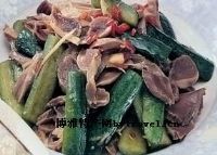 2、鸡肫去外皮,洗净,放入开水中煮熟,捞出,沥干水分,切片,和小黄瓜一起盛入盘中备用。