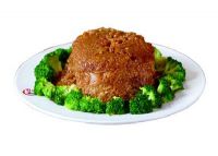 商城黑猪为古老的地方猪种,已获国家原产地标记注册。此猪以米糠、麦麸、红薯、玉米、野菜等为饲料,采用散养、熟食方式饲养而成,生长期长达10月以上。其猪肉属原生态有机食品,肉质鲜嫩,色泽鲜艳,富含氨基酸和微量元素。以黑猪的五花肉和炒制的熟米粉为原料,采用地方传统厨艺蒸制的粉蒸肉,肥瘦均匀,红白相间,嫩而不糜,肥而不腻,香味浓郁,甜中带咸,香烂可口,回味无穷。