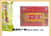 光州贡面为潢川传统工艺食品,始于唐代,因其“夺魁九州、风销华夏”而成为进贡朝廷的宫廷面。光州贡面以精粉和芝麻香油为主料,下适量食盐、明矾等佐料,面揉合均匀后上架拉制,制成后的贡面条细如丝,光泽如银,清馨袭人。贡面的绝妙之处是每根贡面虽细,但皆为空心,呈细管状,工艺之精巧令人赞叹不已。若以鸡汤煮面,辅以其他佐料,滑润爽口,鲜美无比