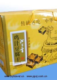 鸡汁豆腐干是汝南传统名优特产,有着悠久的历史。本品精选大豆为原料,富含蛋白质,含有人体必须的8种氨基酸,发传统工艺精制而成。该产品筋香可口,风味独特,食用简便。经过严格的质量管理和杀菌包装,保证产品质量优良,为宾馆、家宴、早餐、馈赠之佳品。