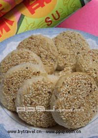 三:甜咸饼:其色香鲜泽,形如螺纹,甜咸适口,芝麻的香味加上汕和面混合的酥酥的感觉给您带来说不出的美味。