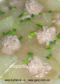 丸子汤是荤素搭配的,丸子有牛羊肉丸、猪肉丸、豆腐丸、豆面丸、焦炸丸和鱼丸等等。光豆面丸还分黄豆芽的、罗卜的、粉条的、香菜的好几种。丸子还分油炸的和水煮的。论个头,大的如核桃一般,小的就像宁波的汤元一样,光看看都眼花缭乱。待用滚热的骨头汤一浇,香气四溢。吃起来有荤有素、有焦有软、有脆有绵,别有风味香可口。