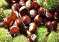 板栗是山毛榉科栗属中的乔木或灌木总称,大约有8—9种,原生于北半球温带地区,大部分种类栗树都是20—40米高的落叶乔木,只有少数是灌木。各种栗树都结可以食用的坚果,单叶,椭圆或长椭圆状,10—30厘米长,4—10厘米宽,边缘有刺毛状齿。雌雄同株,雄花为直立柔荑花序,雌花单独或数朵生于总苞内。坚果包藏在密生尖刺的总苞内,总苞直径为5—11厘米,一个总苞内有1—7个坚果。
