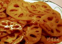 2、炒锅置旺火上,倒入油3汤匙,烧至温热,下葱末、姜末,马上烹入醋,加入酱油、盐和清汤4汤匙,加入藕片略炒,用水淀粉勾芡,淋入花椒油,翻炒均匀后出锅即可。