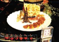 原料:甲鱼1只约1000克,鱼糊250克,蟹黄30克,香菜1棵,葱、姜各10克。