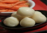 沙市甜独蒜头,又叫荆州甜独蒜头,圆滚滚的,不分瓣,一颗是一个整体。吃起来醇甜香脆,是开胃的佳品。含有丰富的蒜辣素、蛋白质、多种维生素及微量的氮酸。蒜辣素具有抑制和杀灭伤寒杆菌、葡萄球菌、化脓性杆菌的作用,氮酸能开胃健脾。