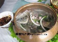 其次,渔家做的湖水煮湖鱼取用的调料也比较特别。湖水煮湖鱼并非不用油,用的是鱼油,渔民捕到大鱼时,将其脂肪取出,放到热锅中反复熬炼,待炼掉腥味后留作食用,有的渔家在熬炼时还加入一点蟹黄,使鱼油增鲜。渔民烹制湖水煮湖鱼所用的酱料也是自己用鱼籽酿成的,特鲜;烧制过程中适当辅以姜、蒜、辣椒、香菜、食盐即可。用这些料子制作出来的食品是名符其实的绿色食品。