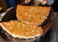 说起“三鲜豆皮”,它绝对不逊色于“汉堡包”和“披萨饼”。豆皮的“豆”必须是脱壳绿豆;豆皮的“皮”必须是精制米浆;豆皮的馅,必须是湘产糯米;豆皮的三鲜必须是鲜肉、鲜菇和鲜笋;豆皮的形,必须是方而薄;豆皮的色,必须是金而黄;豆皮的味,必须是香而醉。难怪它一举夺得过中国饮食行业的最高荣誉“金鼎奖”。