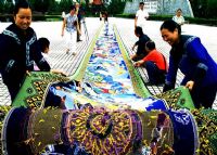无论从心里状态还是处世习惯来看,土家族人是开放型的民族,因而,受汉文化影响较快。比如,土家族人的喜欢吉祥、功名意识等等习惯与汉文化是同一的。于是“福禄寿喜”、“长命富贵”、“鲤鱼跳龙门”、“二龙抢宝”、“一品当朝”、“双凤朝阳”、“狮子滚绣球”、“喜子花”、“龙船花”、“龙云图”等等进入了土家织锦的传统图案。