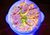 最后把蛋皮摊开,上面铺一层调好的肉馅,就可以开始卷蛋卷了。卷的时候从蛋皮的一头向中部卷起,卷至蛋皮尾部后压紧,做成圆柱形,注意一定要卷实卷紧,蒸的过程才不会出现疲沓的现象。一般隔水蒸25分钟左右就熟了,吃的时候可以切片直接吃,也可以再放进火锅里吃,还可以加点青菜在锅里炒一下。也有人用玉米皮把黄金衣一个个包裹起来蒸,可以避免汤汁的流失,吃起来还有玉米的清香,也算是别有风味了。