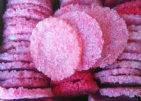糖散因为是圆饼状,便不能用沙子炒了,要吃的时候就放进热油锅里一炸,原来才巴掌大小的糯米饼马上就膨胀成盘子那么大了,原来的深红色也变成了粉红色,让人看着就特有食欲。抓起一个糖散咬一口,才发现糖散真的会散开,这边赶紧用首捧着免得破坏了糖散圆满的形状,而牙齿早就咔嚓咔嚓的把那一口的糖散嚼碎咽进肚里了。