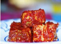 在制作前,当地的土家人会选择当年产的粒大饱满的黄豆,磨制豆腐。用捞车河水制作出来的滑嫩可口的豆腐也是远近闻名的特色菜肴。然后选用较好的豆腐,将其切成方方正正的小豆腐块,放进清水锅里面将其煮熟,这就完成了霉豆腐制作的第一步。接下来就用干净透气的白布将豆腐块包裹起起来,放在稻草堆或者是谷糠里面,待几天豆腐块发酵长霉后就将其取出,与事先调制好的配料搅拌均匀,最后放进盛有当地特产香油的罐中进行泡制,这样洗车河霉豆腐就完成了。