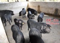 品种性能:湘西黑猪成年公猪平均体重126.83±4.27公斤,体长135.33±1.21厘米,胸围116.00±1.62厘米,体高71.33±1.39厘米;成年母猪相应为:102.82±1.76公斤,127.14±0.63厘米,108.36±0.04厘米,66.55±0.29厘米。性成熟较早,公猪4~6月龄配种,母猪3~4月龄开始发情,初产仔6~7头,经产仔11头。肥育期日增重为280~300克,屠宰率为73.2%,眼肌面积21.5平方厘米,腿臀比例24.2%,瘦肉率为41.6%。