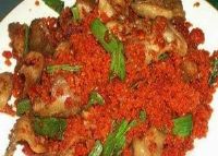 椒包糯米酸辣子:椒包糯米酸辣子是地方风味极浓的民族家食土菜。制作时将颗大肉厚极少辣味的辣椒洗净剖开半边,取出籽粒,然后将碾成粉沫调拌好的糯米装入辣椒肚内,稍加为裹紧,即放入陶干罐里腌浸,半月后即可取出炒吃。椒包糯米酸辣子一般是用油煎炒吃,煎炸时注意火候,要勤翻动,以免烧糊,待椒肚内糯米粉熟透后即可。椒包糯米酸辣子即清香可口,又带几分酸辣色彩,吃起来别有一番风味。