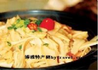 这是一地道湖南家庭菜,所选用的是桃江特产大笋,色白,口感鲜嫩。用鸡汤在干锅中煨,放入不多的剁椒,充分吊出了笋的鲜美味道,越吃越入味。