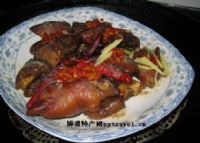 材料:猪脚、花生米、干辣椒、剁辣椒、红椒、姜、葱、蚝油、红油、香叶、八角、盐、味精、鸡精、胡椒粉等。