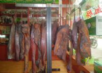 城步腊肉源自野菜苞谷喂大的土猪,经过盐的浸透和柴火慢慢熏烤而成。烘腊肉,急不得,没有数月时间,肉里水气不会干,香气也就出不来。炕上腊肉,漆黑如锅底,有“黑武器”之称。然经洗净,它的精美质地就会呈现出来,肥肉透亮,精肉深红,吃起来精肉贼香,肥肉油滋滋却不腻。除腊肉外,还有畜肉、鱼、泥鳅、黄泥蛙等腊菜。