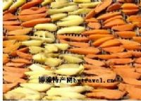 干红薯的制法比较简单,把红薯洗净放入鼎中蒸熟,然后把它切开日晒而成,它颜色呈精黄色,略带红色,味道香甜,嚼味无穷。